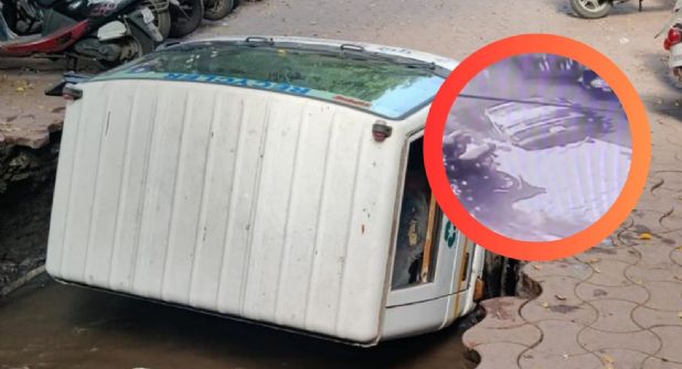 Un sorprendente incidente ocurrió en Pune, Maharashtra, India, cuando un camión cisterna cayó en un socavón que se abrió de forma repentina cerca de la oficina de correos.