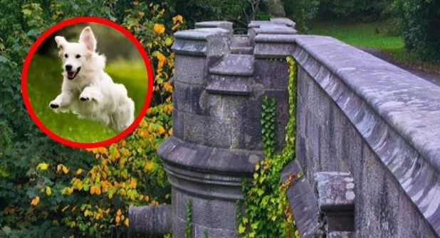 La mujer dijo que parecía como si su mascota se hubiera congelado y luego hubiera sido poseída, para luego saltar desde el borde del puente.