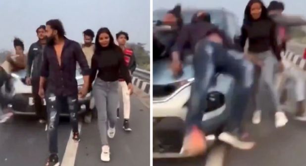 Un grupo de influencers fueron embestidos por un automovilista en una autopista de la India, esto cuando los jóvenes grababan un video caminando y usando uno de los carriles del arroyo vehicular.