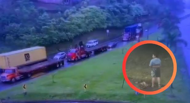 Una familia fue embestida por un tráiler de carga pesada, mientras se encontraba detenida en la vía para que uno de sus hijos pudiera bajar del vehículo a realizar sus necesidades fisiológicas, quedó registrado en video y ha conmocionado a usuarios en redes sociales.