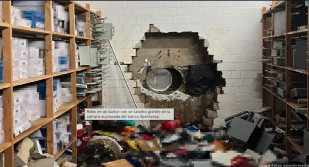 Una bóveda fue vaciada en Gelsenkirchen, Alemania, luego de que un grupo de ladrones lograra acceder donde se encontraban cerca de 30 millones de euros y llevárselos. Los sujetos perforaron un gran agujero en la pared para poder acceder al dinero que se encontraba resguardado.