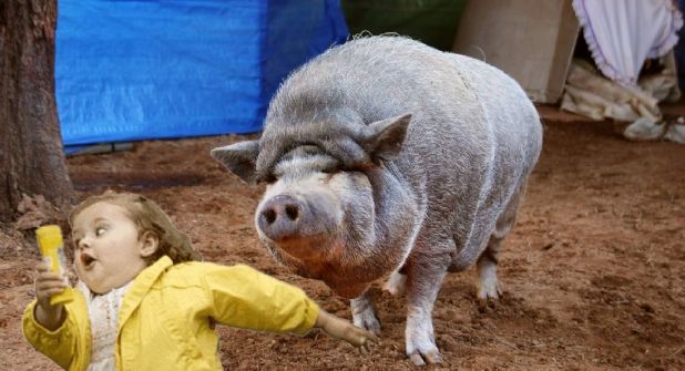 En ese momento notó que tenía compañía, ya que un enorme cerdo barrigón la veía desde la entrada, sin moverse y en silencio. La repartidora no supo qué hacer en el momento.