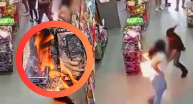 En un video captado por las cámaras de seguridad, se observa cómo el celular, que llevaba en su bolsillo trasero, estalla causando una llamarada que provoca quemaduras en los glúteos de la mujer. Desesperada, la víctima comienza a brincar y corre, mientras un hombre cercano intenta ayudarla.
