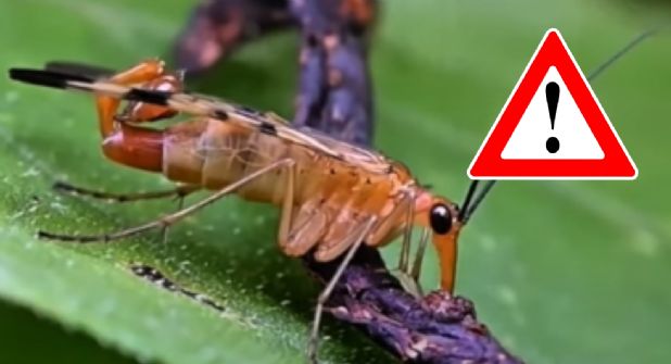 De acuerdo con Picture Insect, los ‘alacranes con alas’ no son venenosos, tampoco pican ni implican ningún riesgo para el ser humano. Caso contrario con los ‘escorpiones originales’, pues algunos sí poseen veneno. El aguijón del ‘alacrán con alas’ no desprende venenos o toxinas. De hecho, expertos biólogos señalan que dicha parte del cuerpo integra el aparato reproductor de los machos.