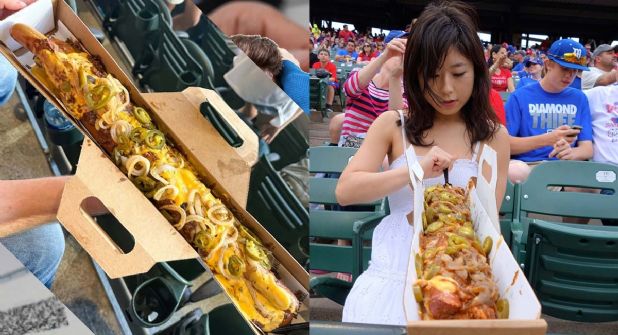Para poder encontrar el gran hot dog debes acudir al estadio de los Rangers, el cual es nombrado Globe Life Field en Arlington, Texas. El bocadillo de 61 centímetros es una sensación para quienes gustan de la comida rápida porque además en su composición tiene una libra de carne, lo que lo vuelve muy atractivo para los comelones.