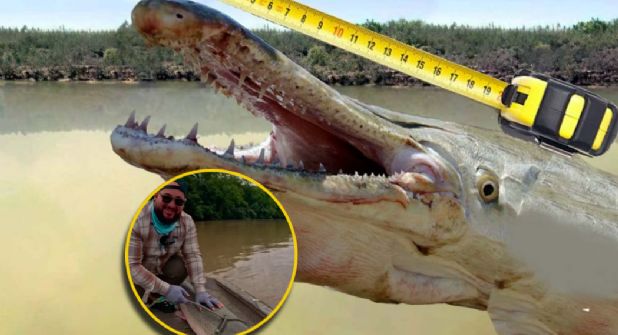 Al final, revela las características del enorme catán: alrededor de metro y medio y cerca de 60 kilos, un ejemplar para nada despreciable en los premios de los pecadores de este animal en Texas.