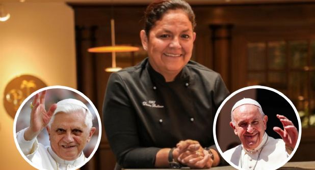 Diana recuerda que gracias a su cercanía al Vaticano pudo cocinar para los pontífices Benedicto y Francisco, el no saber decir que no la metió en aprietos pues tuvo que modificar su manera de cocinar, la chef mexicana recuerda que le tenían prohibido cocinar con gas por lo que hacía uso de parrillas eléctricas y sus recetas cambiaban por completo.