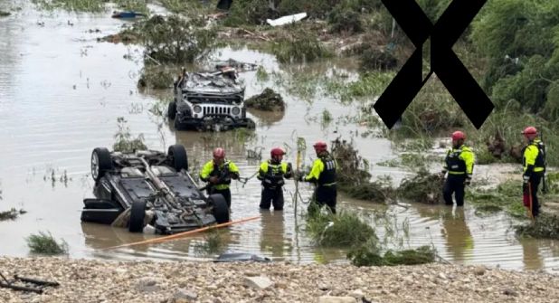 Además varios vehículos destrozados y volcados cubrían un arroyo después de haber sido arrastrados por las aguas.