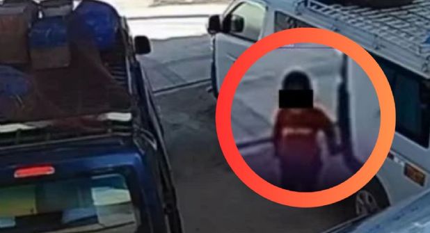 Las imágenes muestran que el menor, mientras estaba momentáneamente sin vigilancia de su madre, se alejó hacia una zona donde varias unidades de transporte público estaban estacionadas.