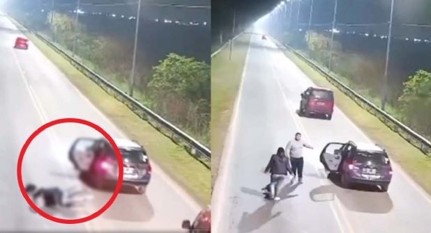 El taxista, al percatarse de que la joven se aventó del auto, decide detenerse y bajarse para auxiliarla. Después, otro automovilista se detiene y conversan con la joven para insistirle en que acuda a un hospital por las heridas de la caída. Luego la policía llegó tras la alerta de las cámaras del Centro de Operaciones y Monitoreo.