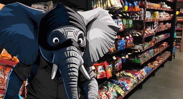 El dueño de una tienda de conveniencia se llevó menuda sorpresa cuando un elefante enlodado y hambriento irrumpió en la tienda. Esto sucedió durante esta semana en una locación de Tailandia que queda muy cerca del parque estatal.