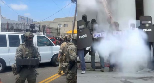 Los agentes del ICE usaron granadas aturdidoras y bombas de humo para repeler a los manifestantes que se aglomeraron para intentar impedir la operación, que resultó con la detención de por lo menos 44 personas, de las cuales se desconoce su estatus legal en el país.