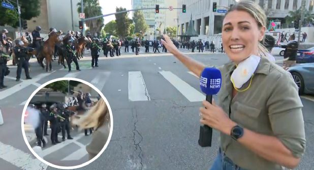 “Mientras se encontraban reportando las protestas en los Ángeles, la reportera de 9 News, Lauren Tomasi, fue golpeada por una bala de goma. Lauren y su camarógrafo están a salvo y seguirán haciendo su trabajo esencial, cubriendo estos eventos.