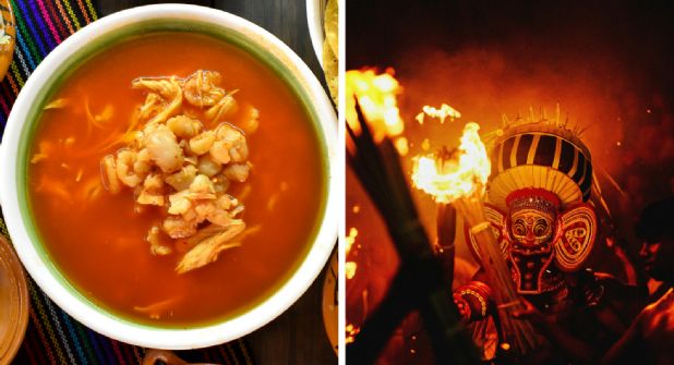 El platillo en cuestión es el pozole, un caldo con maíz y diversas carnes, sazonado con chiles y especias, dependiendo el color del que se vaya a preparar. El tradicional es rojo, aunque también hay verde y blanco, como la bandera de México.