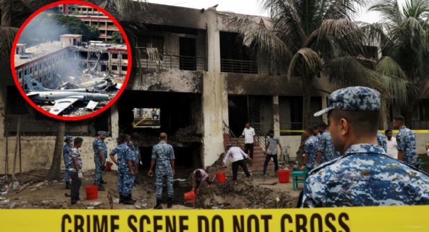 El avión, un F-7 de la fuerza aérea, sufrió una falla mecánica poco después de despegar a las 13:00 horas para un ejercicio de entrenamiento. El piloto, teniente de vuelo Taukir Islam, intentó desviar la aeronave hacia una zona menos poblada, pero finalmente se estrelló contra el edificio escolar. Islam también perdió la vida.