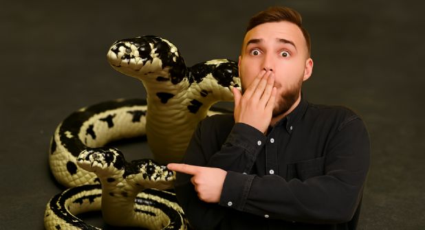 Bautizada como Zeke y Angel, esta serpiente bicéfala representa un caso real de bicefalia, una anomalía genética poco común que ocurre cuando un embrión no se divide completamente, dando lugar a dos cabezas en un solo cuerpo.