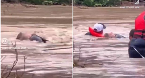 Con las cuerdas aseguradas, los implicados empiezan a jalar para poner a salvo a la mujer, pues parece indicar que estaba atrapada en el flujo. Tras un buen esfuerzo, los rescatistas lograron salvar a la ciudadana en Texas; trasciende que rápidamente fue trasladada a un hospital para su valoración.
