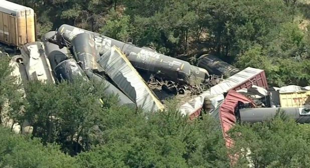 El accidente ocurrió alrededor de la 13:45 (hora local) en un puente ferroviario, las causas del percance aún se desconocen pero se sabe que la locomotora transportaba al menos 35 vagones con materiales peligrosos, el contenido no ha sido revelado por las autoridades locales.