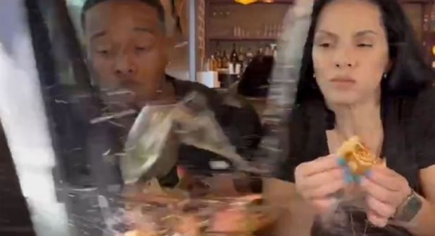 Patrick Blackwood y Nina Santiago, conocidos por sus videos en redes sociales donde prueban diferentes platillos y recomiendan restaurantes, se encontraban grabando un video en un local cuando un automóvil se estrelló contra la ventana junto a su mesa.