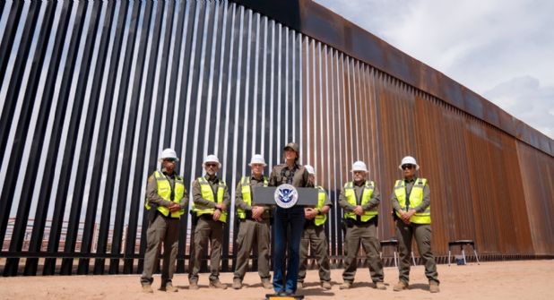 La rectificación ocurre tras la visita de la secretaria de Seguridad Nacional, c, a la frontera de Nuevo México. Durante ese recorrido, la funcionaria llegó a aplicar pintura en un pequeño tramo, a manera de prueba y con un fuerte simbolismo político.