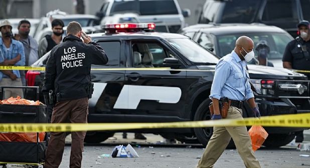 Las autoridades revelaron que oficiales de la Policía de los Ángeles habían estado en la zona para desalojar una fiesta no autorizada que congregaba más de 50 personas, durante el operativo una persona fue arrestada por posesión de un arma de fuego.