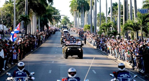 Tras los honores en la pista, los cuerpos comenzaron un cortejo fúnebre por las principales avenidas de La Habana hasta llegar al Ministerio de las Fuerzas Armadas Revolucionarias, donde fueron expuestos para homenaje público.