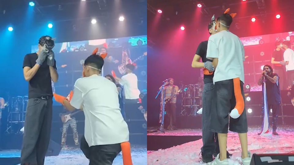 La escena ocurrió mientras sonaba una balada romántica, dos hombres, caracterizados con máscaras de animales y colas, subieron al escenario tomados de la mano y frente a los asistentes, realizaron un beso esquimal, frotando suavemente las puntas de sus narices artificiales, en un gesto que fue recibido primero con expectativa y luego con euforia.