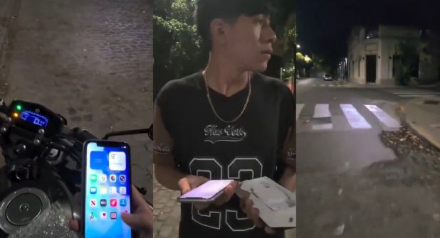 En las imágenes del video, que se viralizaron en plataformas como X, se observa cómo el joven se encuentra en la vía pública cuando llega con un primer joven a quien le muestra el iPhone.