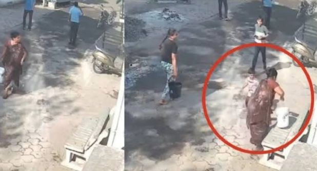 El momento quedó registrado en un video de cámaras de seguridad que rápidamente comenzó a circular en redes sociales. En las imágenes se observa al niño acercarse con la intención de jugar, como es común durante las celebraciones de Holi. Segundos después, la mujer toma un recipiente con agua caliente y se la lanza.