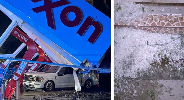 Uno de los incidentes ocurrió en una gasolinera ubicada en Embassy Road y U.S. Highway 83, donde el techo del área de bombas de combustible colapsó debido a la fuerza del viento. No se reportaron personas lesionadas, aunque la estructura cayó sobre varios vehículos que estaban estacionados cerca de los dispensadores.