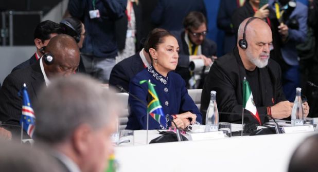 La Presidenta de México, Claudia Sheinbaum Pardo, propuso en la *IV Cumbre en Defensa de la Democracia*, realizada en Barcelona, España, dos acciones en favor de la paz: 1. Destinar el 10 por ciento del gasto mundial en armamento para impulsar un programa global que permita reforestar millones de hectáreas cada año, y 2. Una declaración en contra de la intervención militar en Cuba.