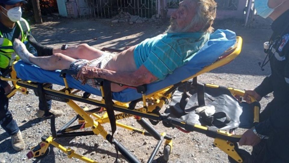 José Álvaro, de 70 años, fue auxiliado por elementos de Protección Civil y Bomberos y trasladado de urgencia al Hospital General ante la serie de quemaduras que sufrió en el siniestro.