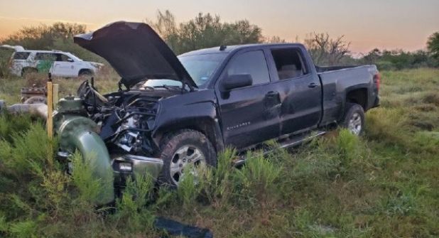 Mujer indocumentada salió volando en carrera de la troca en que era transportada, porque el mueble se impactó a gran velocidad contra un grueso ducto de carburantes dentro de un rancho, en una persecución de la Patrulla Fronteriza.