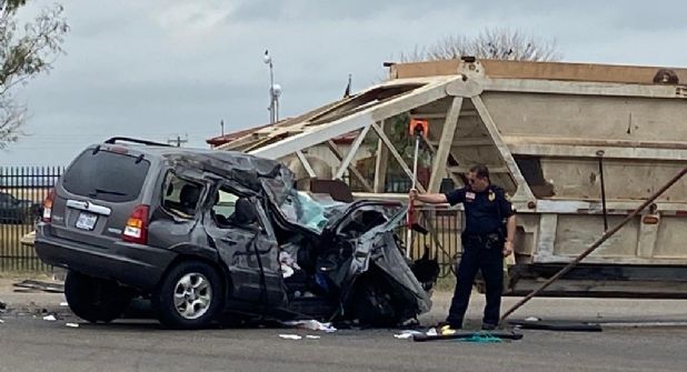 Saldo preliminar de un niño grave y un adulto que manejaba la SUV Mazda Tribute, color gris, la cual chocó contra la tolva de color crema estirada por un camión “quinta rueda”, color rojo, que entraba al basurero de la ciudad.