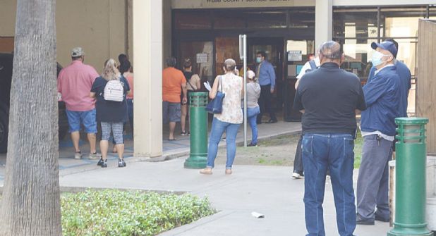 La fila para ingresar a la oficina de impuestos del condado se realiza por la entrada de la avenida Convento.