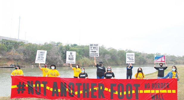 El proyecto del muro del ex presidente Trump fue detenido por una mezcla de organización y de lucha por parte de dueños de terrenos locales, empresarios, artistas, jóvenes, religiosos y otros miembros de la comunidad y funcionarios locales, seguida de una orden ejecutiva del Día 1 de la Administración Biden.
