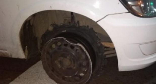 Cuestionada sobre las ruedas del auto, ella dijo que una hizo “pum” y que la otra “se cayó”, que eso ocurrió sobre la carretera 83 Sur.