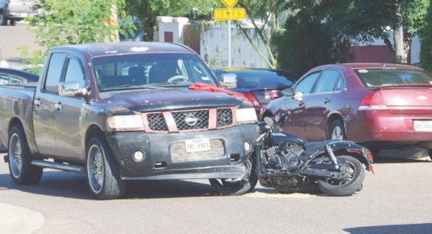 Una damita en motocicleta Harley Davidson, chocó al este de Laredo contra una camioneta Nissan.