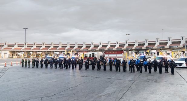 Una Guardia de Honor compuesta por un personal de CBP y otras fuerzas policiacas presentaron los colores izando por completo la bandera estadounidense para luego dejarla a media asta.
