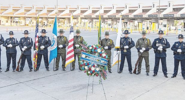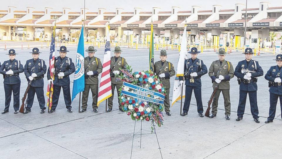 Una Guardia de Honor compuesta por un personal de CBP y otras fuerzas policiacas presentaron los colores izando por completo la bandera estadounidense y luego dejarla a media asta.