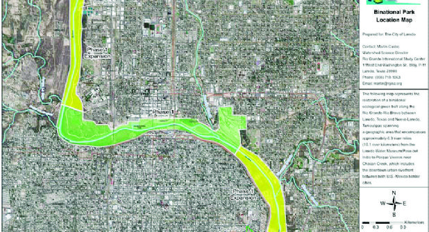 La pieza central de este Diseño Fase 1 implica la restauración ecológica de un cinturón verde integrado a lo largo del río Grande-río Bravo, entre las ciudades de Laredo, Texas y Nuevo Laredo, Tamaulipas, que abarca una zona geográfica de aproximadamente 6.3 millas de río (10.1 kilómetros), desde el Paso del Indio en Laredo hasta el Parque Viveros en Nuevo Laredo, cerca del arroyo Chacon en el lado americano e incluye el centro urbano frente al río entre ambas ciudades.