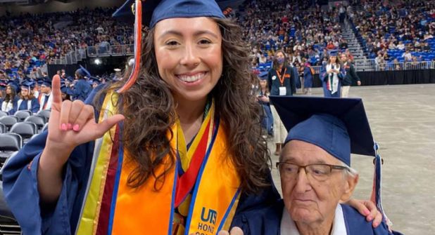 Se gradúan de la universidad nieta y su abuelito