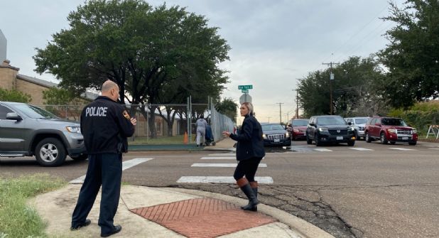 Una mujer policía municipal, en patrulla, marcó alto al conductor del Ford, ocurrió cuadras al sur de Laredo, éste no se detuvo sino que imprimió velocidad huyendo, pero en el crucero señalado, enfrente de la puerta principal de la escuela, los tipos pararon el coche y huyeron a pie.