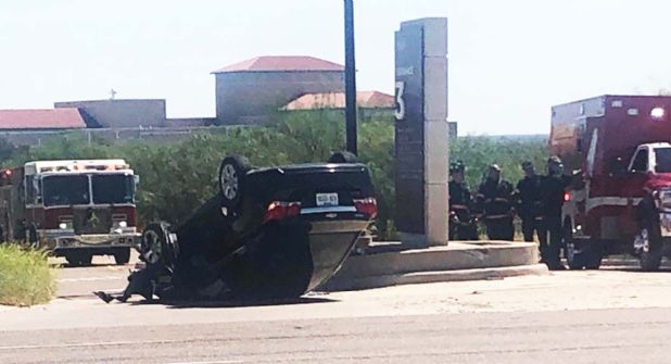 Triple choque con volcadura, dejo saldo de una mujer grave, ocurrió en el cruce de los bulevares Bob Bullock y University, justo frente a TAMIU.