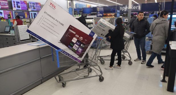 En un recorrido por la tienda Walmart se pudo apreciar que los compradores o muchos de ellos llegaron antes de la apertura y al ingresar buscaron principalmente las pantallas.