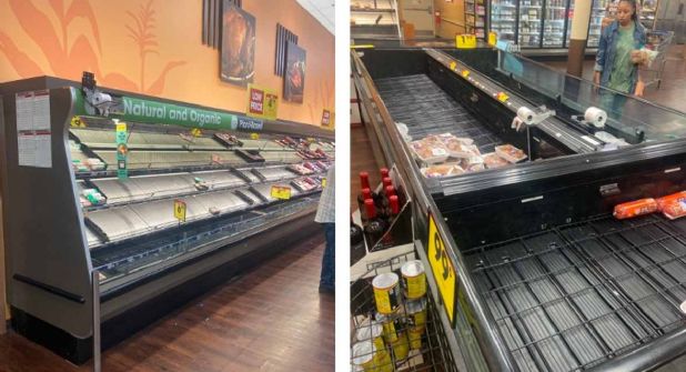 Collin Cochran compartió imágenes con CBS 11 de estantes vacíos, específicamente en el mostrador de carnes donde la carne de res y el pollo parecían escasear.