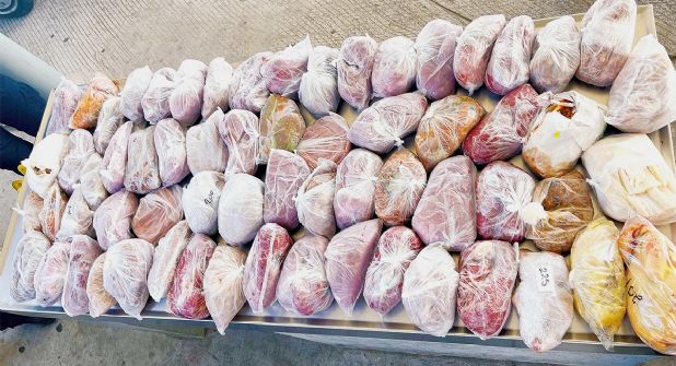 Le hallaron 117 libras de carne de puerco fresca y casi siete de ave; lo multaron con mil dólares. En la primera caseta del puente internacional Juárez-Lincoln le preguntaron por fruta, carne, vegetales, plantas o cualquier otro producto prohibido y dijo que no.