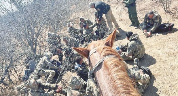 Un grupo de 20 indocumentados vestidos con ropas de estampado de camuflaje, caminando en un área de terreno muy accidentado, inaccesible a cualquier vehículo motorizado, fueron interceptados por los elementos de la división montada de la Patrulla Fronteriza en Laredo. Al noroeste de esta ciudad, existen lugares con cañadas, desfiladeros, precipicios, cañones y demás sitios de muy difícil tránsito, donde solo a pie o sobre el lomo de un animal, se puede ingresar y avanzar.