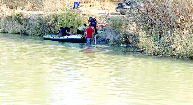 Agentes federales en lanchas rápidas con motor fuera de borda, dentro del afluente, así como en camionetas y carros por las riberas del mismo, los estuvieron copando en el lado estadounidense.