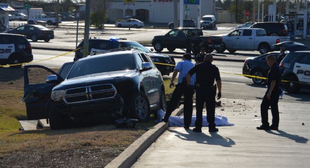 A segundos de morir, un hombre joven, chocó contra el anuncio del restaurante de hamburguesas Sonic, en la esquina de carretera 83 Sur y calle San Luis, iba fatalmente herido de bala, conduciendo en solitario, una vagoneta Dodge Durango, color oscuro.